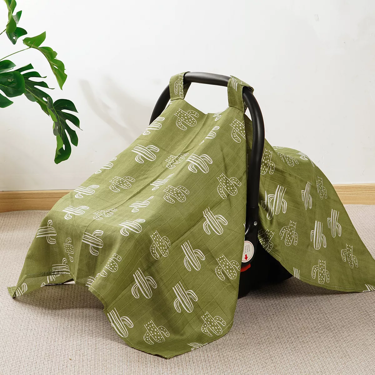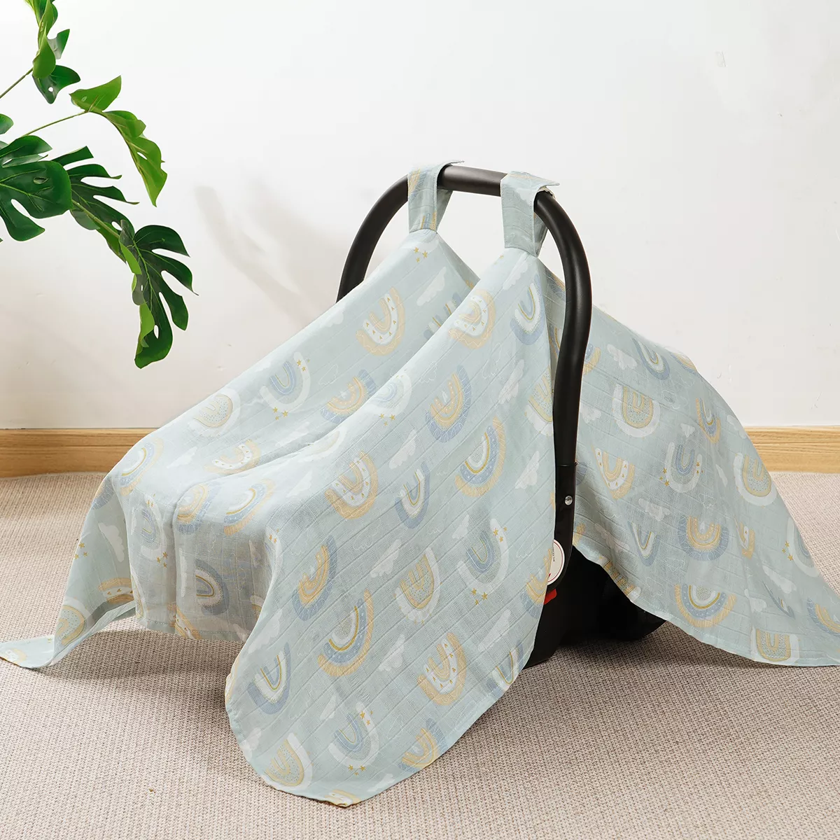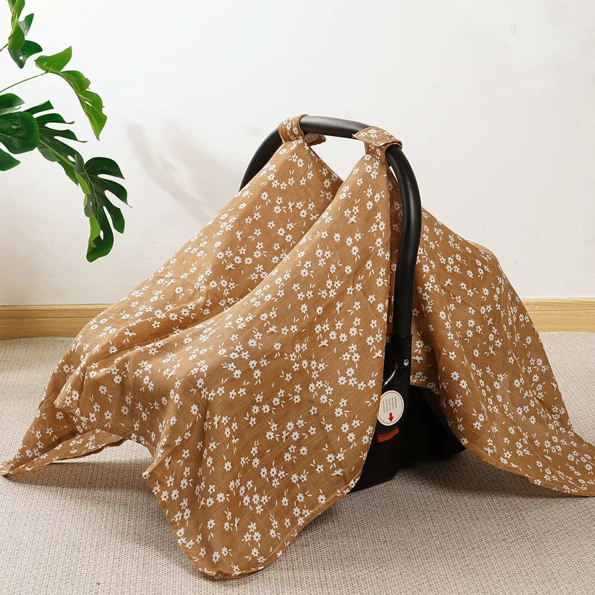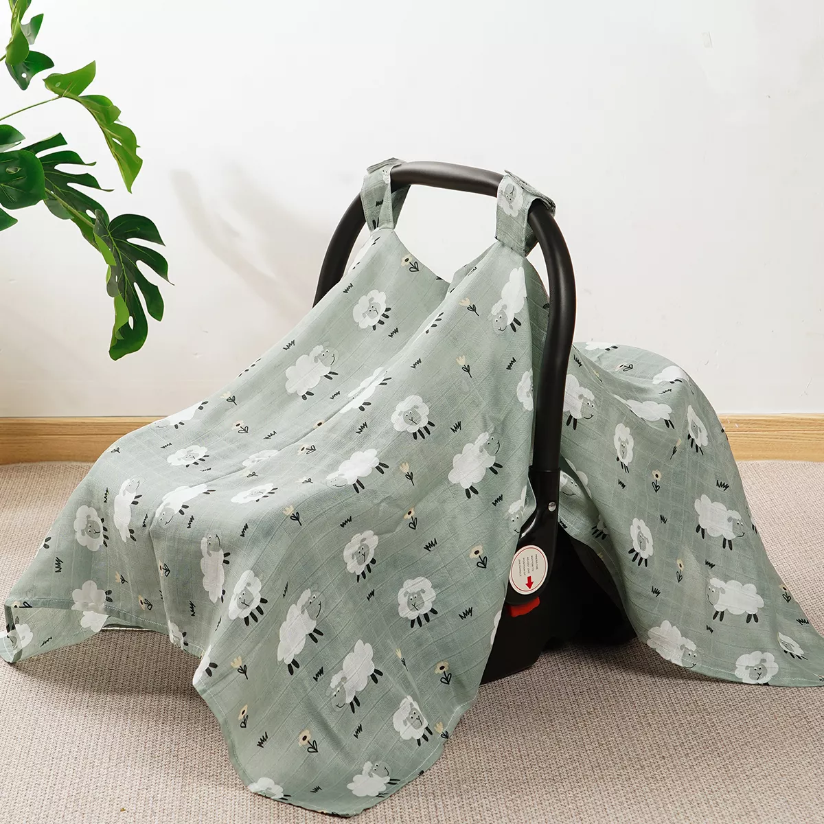 Soft Cotton Baby Muslin Blanket & Car Seat Cover – Breathable Sunshade for Newborns