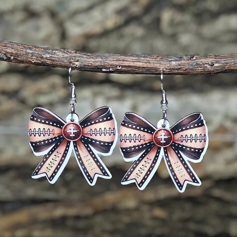 Embrace your sporty side with these Sports Style Earrings, featuring creative bowknot designs with a playful mix of baseball, basketball, and football patterns. Perfect for sports enthusiasts and anyone who loves to add a touch of athletic flair to their style. These earrings are a fun and stylish way to celebrate your love for sports while keeping your look fresh and trendy.