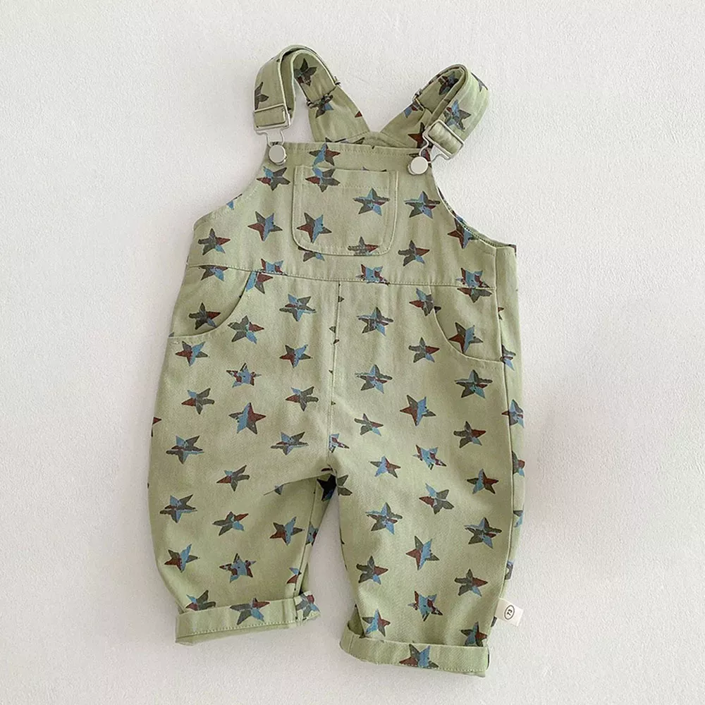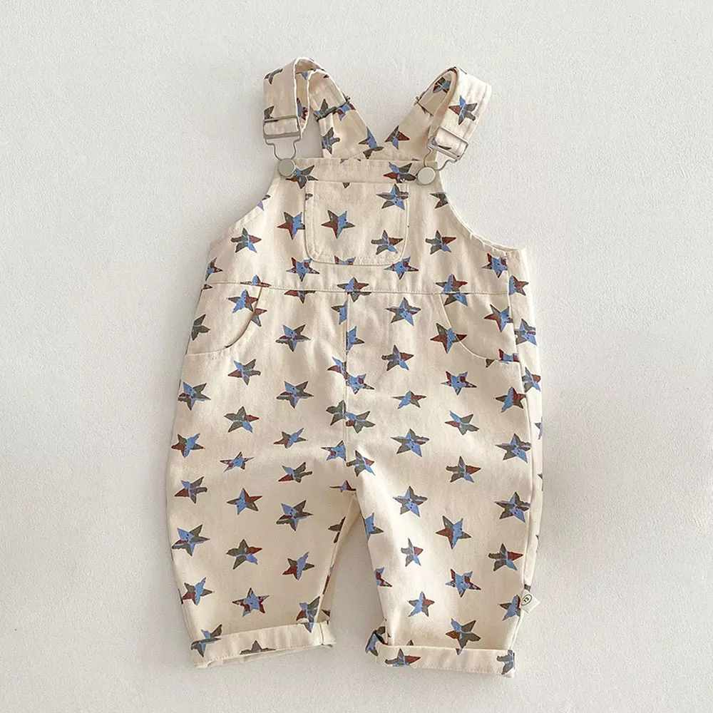 Crafted with a soft, breathable cotton and polyester blend, this unisex romper is lightweight and gentle on young skin. The relaxed loose fit offers plenty of room for movement, making it a great pick for curious little ones always on the go. With a charming galaxy-inspired star print, these overalls add a trendy, cosmic twist to any kid’s spring wardrobe.