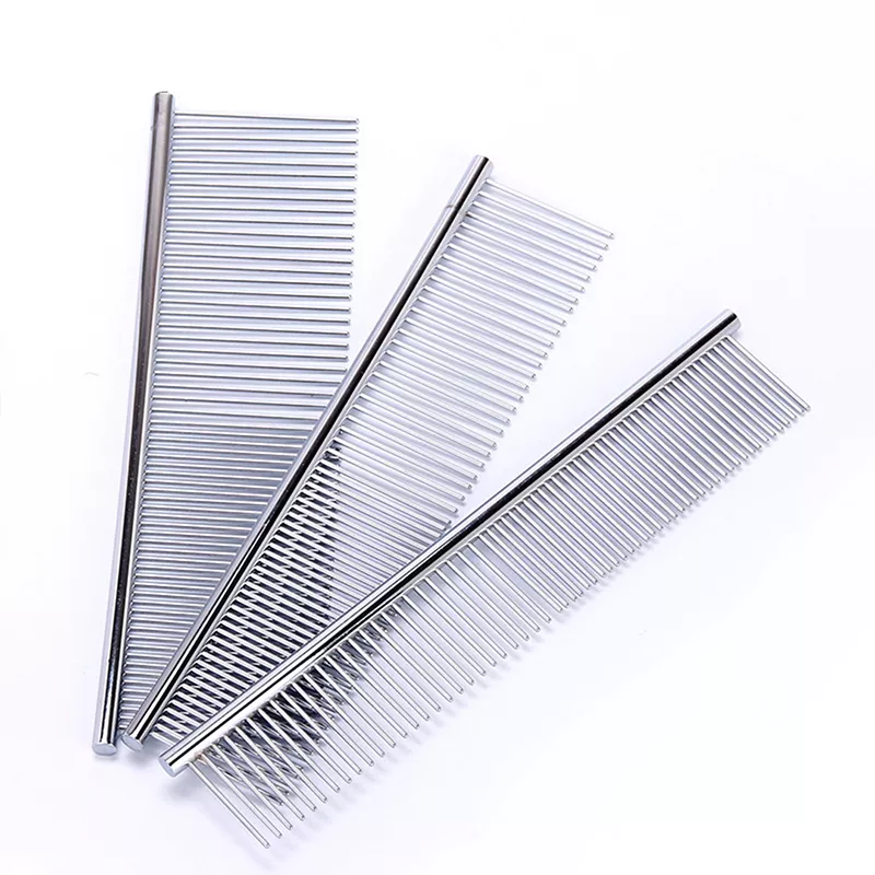 Perfect for daily grooming or weekly maintenance, this comb is your go-to tool for a cleaner coat and a happier pet. Its high-quality stainless steel teeth glide effortlessly through fur without pulling, scratching, or irritating sensitive skin. The dual-density teeth design makes it versatile for different fur types—ideal for both thick and fine coats. From short-haired tabbies to fluffy retrievers, every pet benefits from a smooth, tangle-free grooming experience.