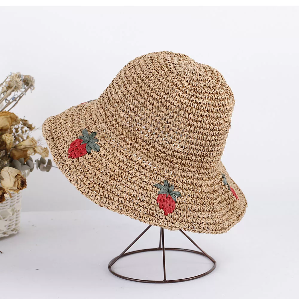 The Strawberry Print Bucket Hat combines practicality and style in one must-have accessory. Its lightweight straw material keeps you comfortable in hot weather, while the wide brim ensures that you stay cool and protected from the sun’s harmful rays. The adorable strawberry print adds a playful and refreshing touch, making it the perfect companion for all your summer activities.