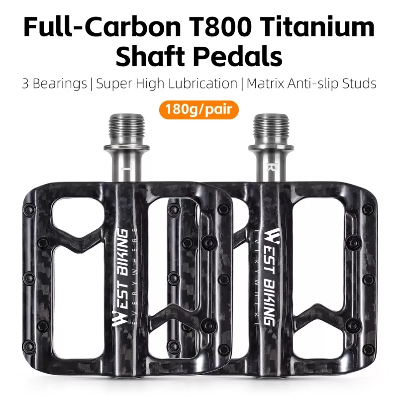 Crafted from premium T800 carbon fiber and featuring a titanium alloy shaft, these pedals offer the perfect balance of strength and feather-light performance. At just 3.2 oz per pedal, they reduce unnecessary weight without compromising durability, giving you more speed and less fatigue on long rides.