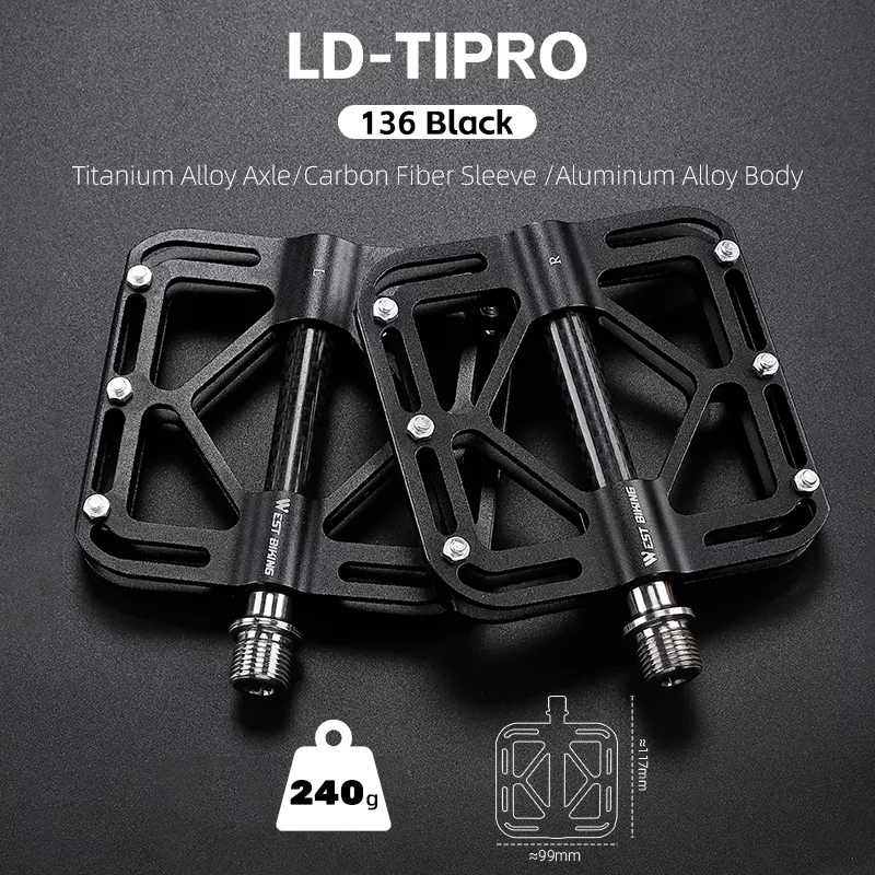 Take your cycling experience to the next level with these ultralight, high-performance bike pedals. Designed for riders who demand speed, strength, and style, these pedals deliver a smooth, responsive ride whether you’re tackling rugged mountain trails or cruising open roadways. Crafted with a robust aluminum alloy body, carbon fiber tube, and a titanium alloy axle, every detail is built for efficiency and endurance. The triple-bearing system ensures ultra-smooth rotation, saving you energy with every push.