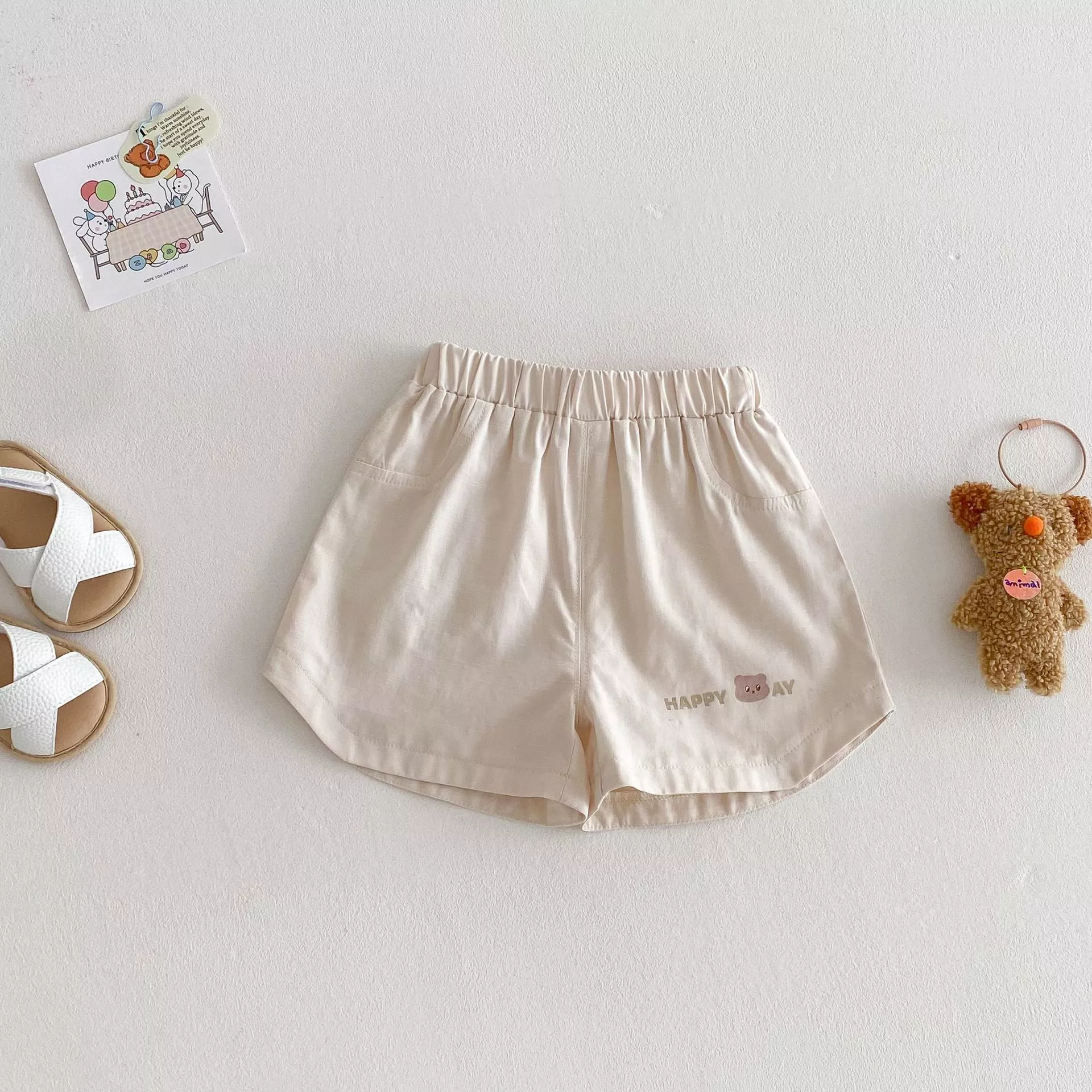 These casual shorts feature delightful “HAPPY BEAR” embroidery on the pockets that add a fun and trendy twist kids adore. Whether it’s a playdate at the park or a sunny day at home, these shorts are built for carefree movement and endless fun. With their elastic waistband and soft, breathable fabric, dressing your child becomes a breeze — no zippers, no hassle.