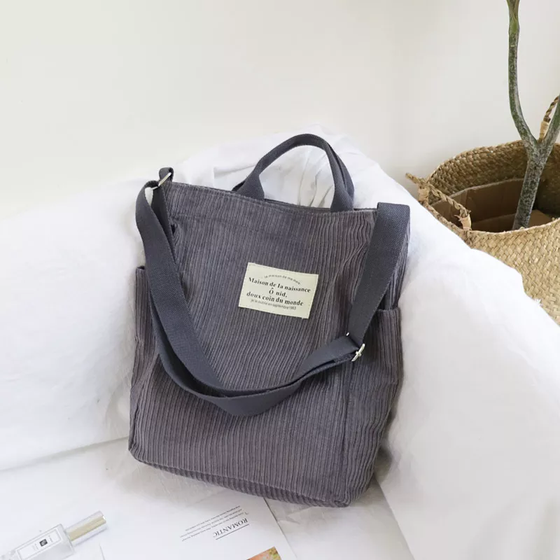 Crafted from premium corduroy fabric, this bag has a cozy, textured finish that adds a touch of warmth and character to your look. The spacious main compartment easily fits your daily essentials, while an interior pocket keeps smaller items like your phone or keys within easy reach. It features both a comfortable hand strap and an adjustable shoulder strap, allowing you to wear it as a handbag, shoulder bag, or crossbody—whatever suits your day best.