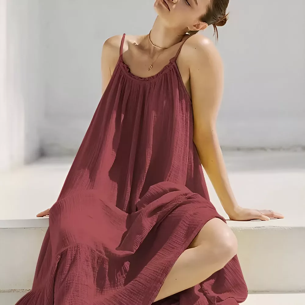 Light, airy, and effortlessly chic – this 100% Cotton Gauze Muslin Summer Dress is your new warm-weather favorite. Designed with a breezy silhouette and soft crepe de chine fabric, this sleeveless sundress is everything you need for sun-soaked days and carefree nights. Whether you’re headed to the beach, a holiday escape, or a relaxed garden party, this dress brings both comfort and style to your summer wardrobe.