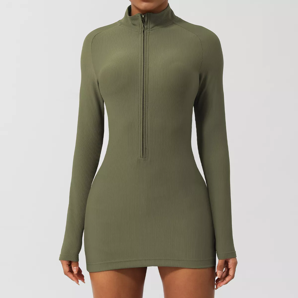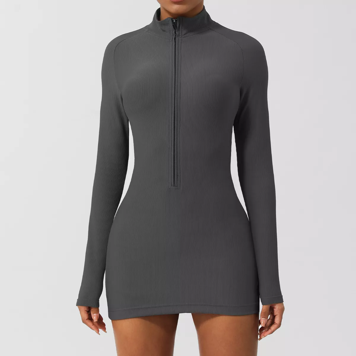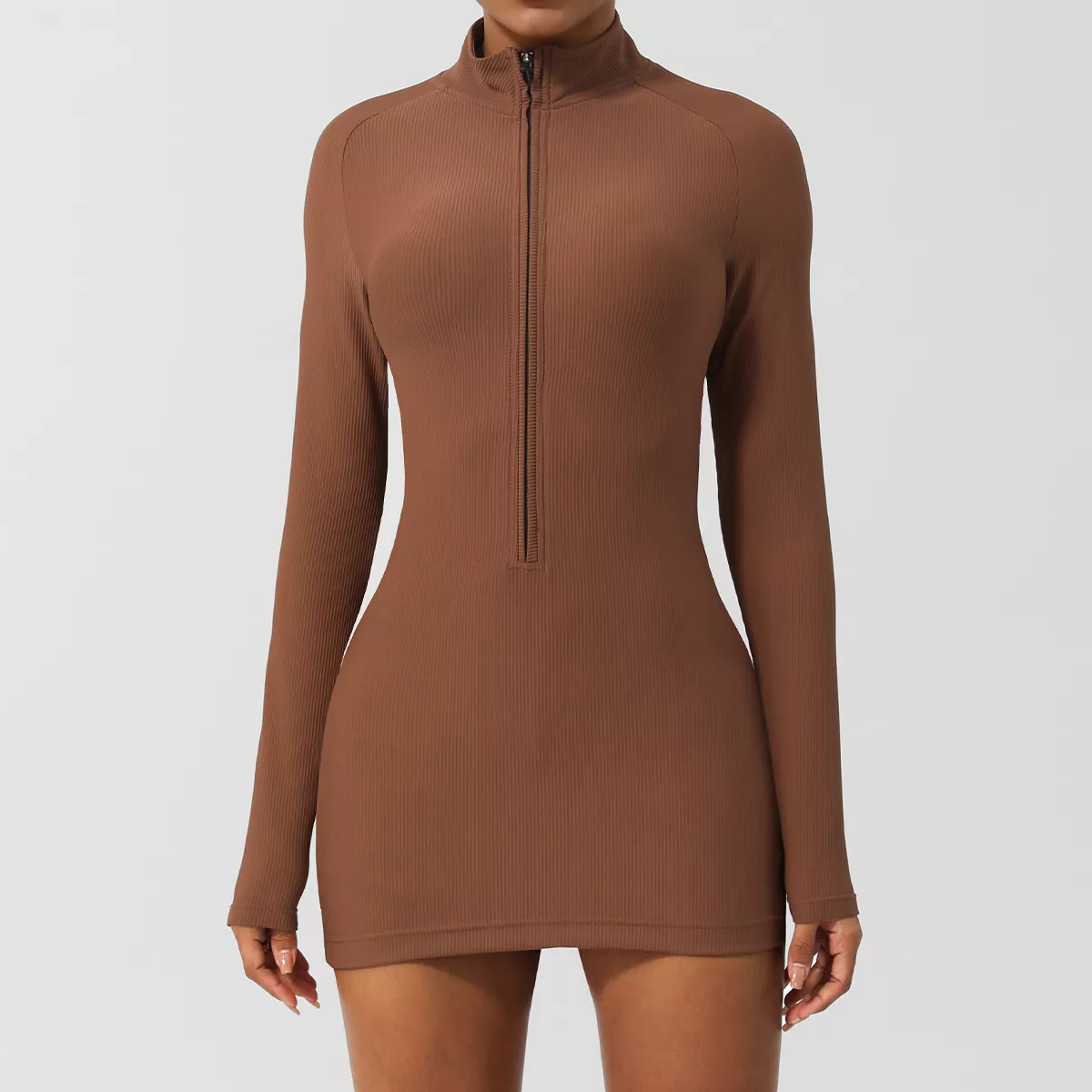 Unlike basic sportswear, this yoga tennis dress combines sleek style with high-performance features. The ribbed texture adds a fashion-forward touch while the moisture-wicking, breathable fabric works hard to keep you dry. Its slim fit and full-length sleeves are designed for both movement and a flattering silhouette that complements every figure. Available in rich, solid tones like brown, green, gray, and black, it’s a piece you’ll reach for again and again.