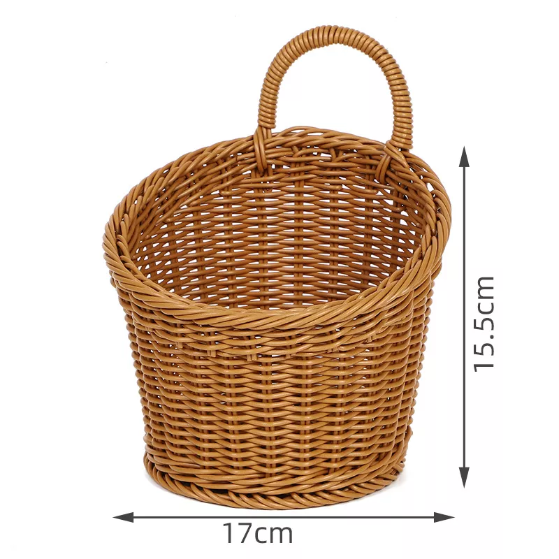 Crafted from eco-friendly PP plastic, it mimics the natural look of rattan while offering the durability and mold resistance of synthetic materials. Its lightweight build and sturdy handle make it easy to carry and hang anywhere, from hooks on walls to kitchen racks or closet doors. Thanks to its slightly lower front edge, reaching inside to grab stored items is effortless and smooth.